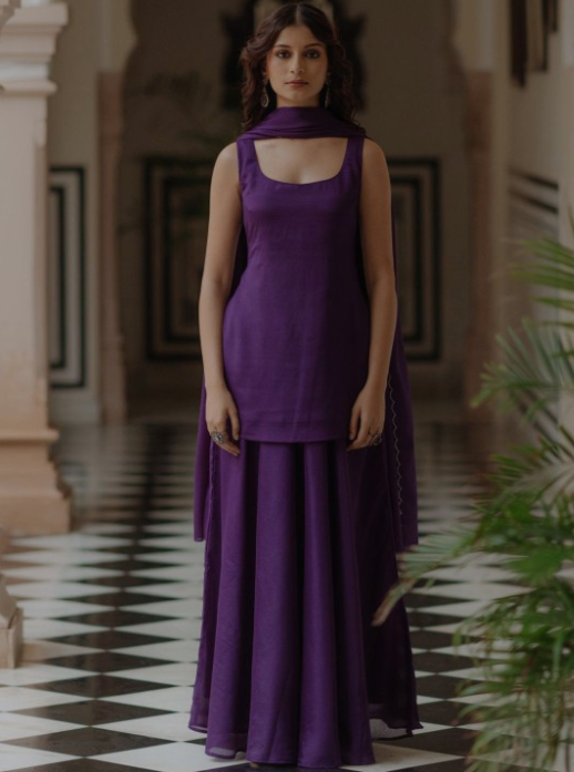 anayna Embroidered Angrakha Kurta with Sharara & With Dupatta