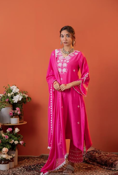 Amazon Brand – Tavasya Silk Blend Embroidered Kurta Set with Dupatta For Women