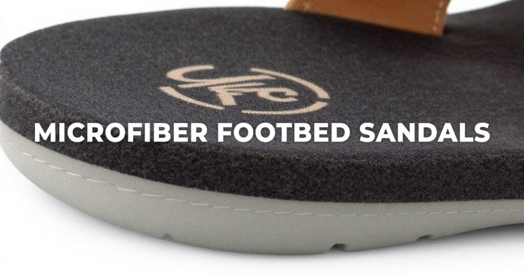 A microfiber footbed uses a synthetic fabric layer—often similar to suede—applied over a supportive base such as EVA, cork, or latex. Unlike leather, microfiber offers a uniform texture and enhanced moisture control.