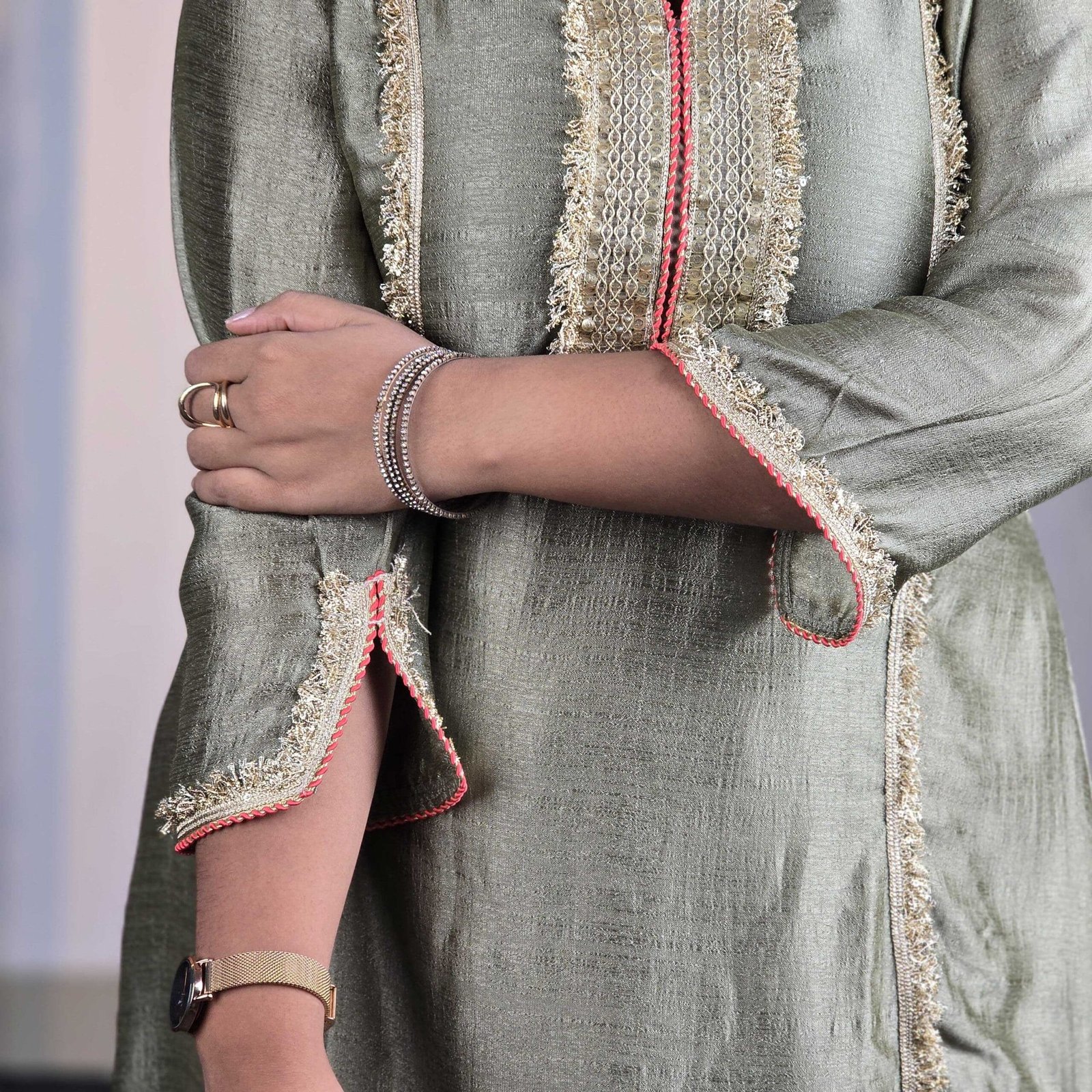 Green, gold-toned & pink