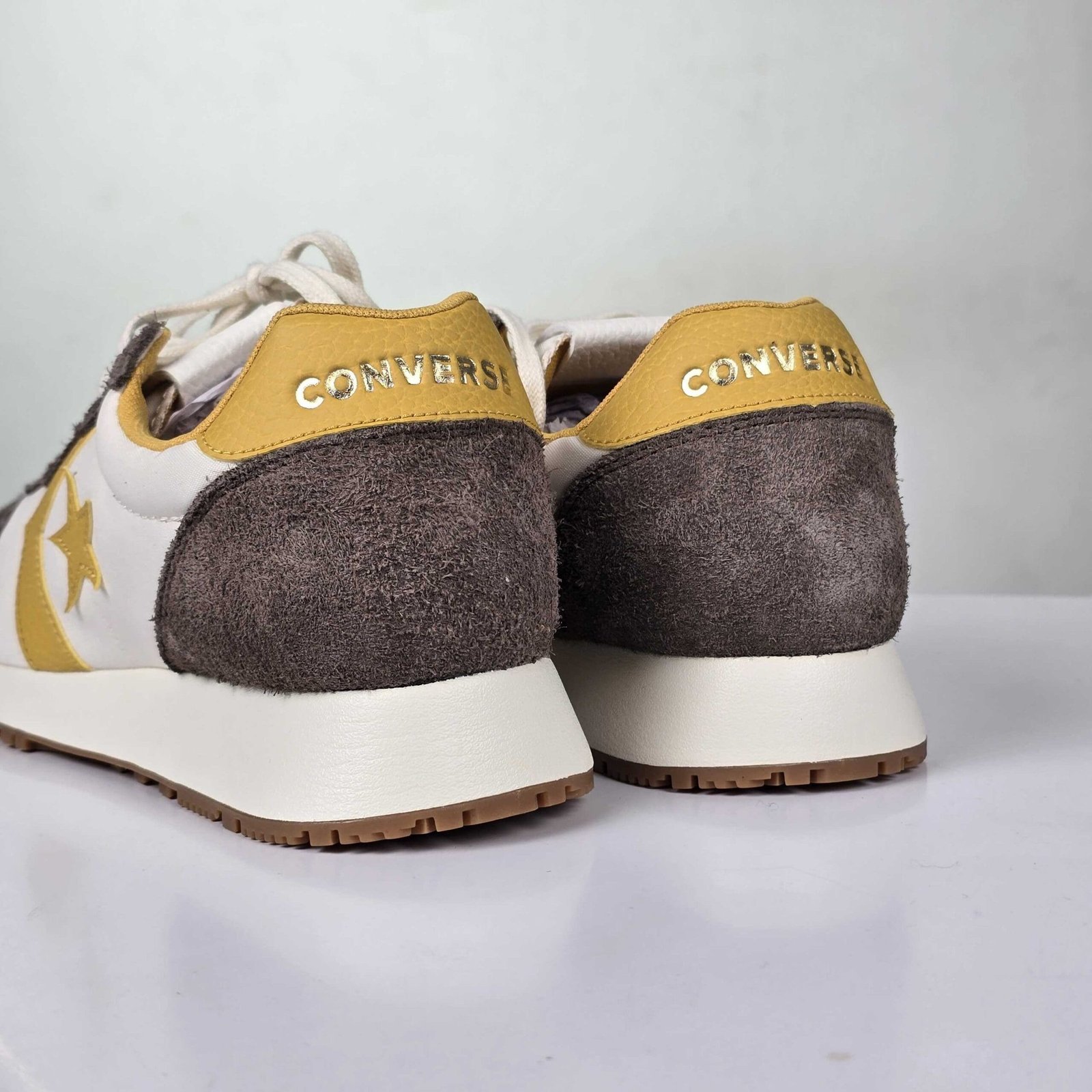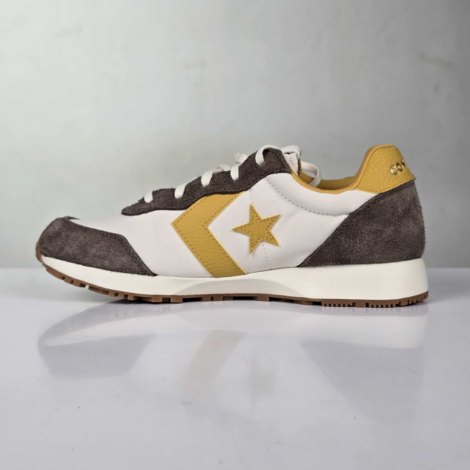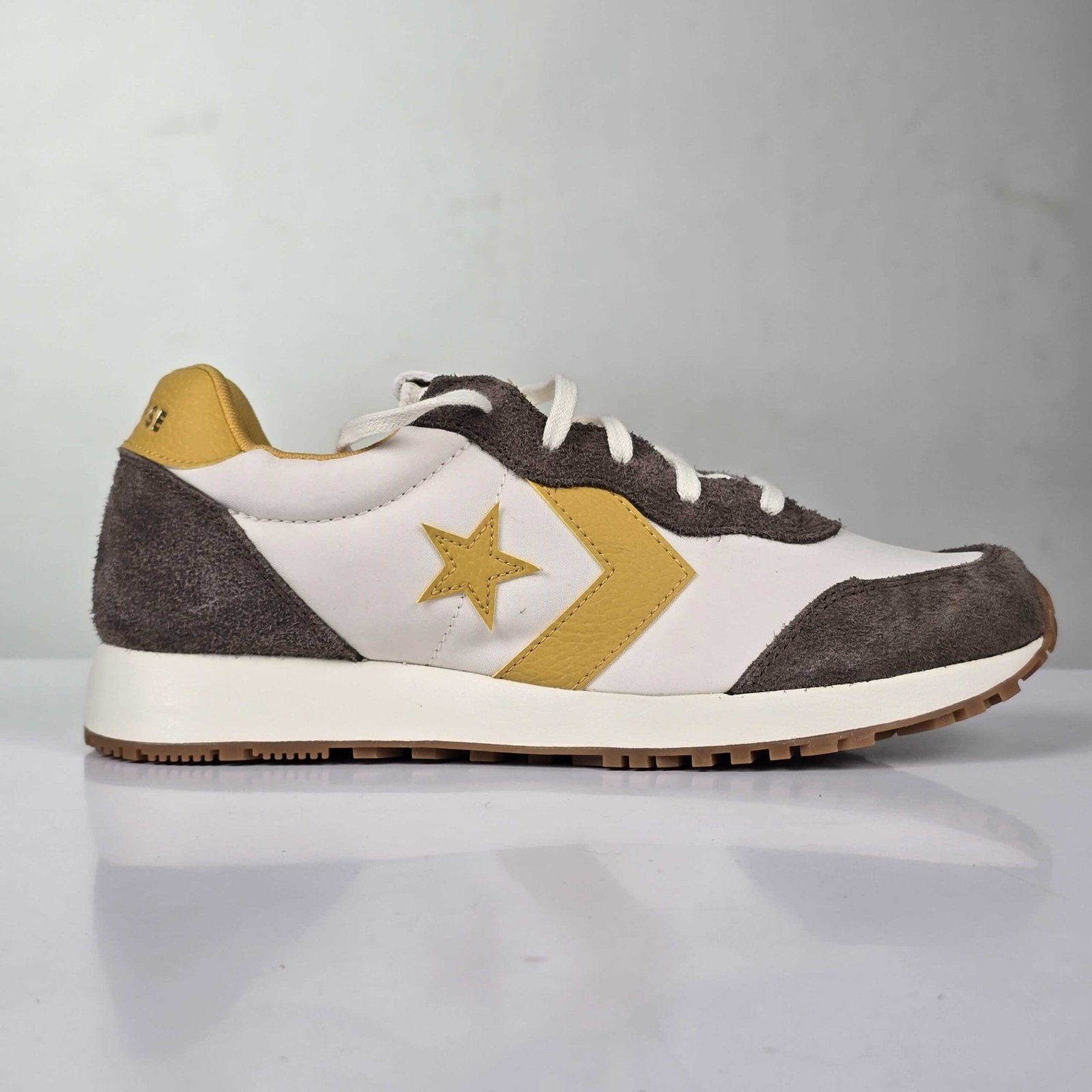Brown, mustard yellow & off white