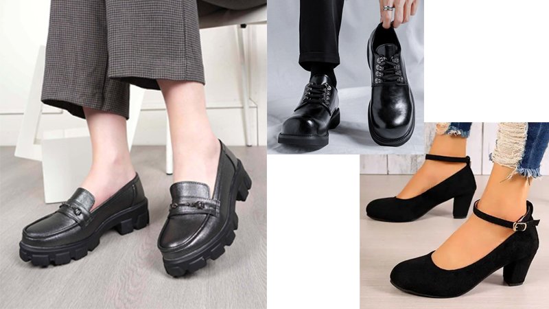 (Suggested Image 2 – Collage of women’s round toe heels, loafers, and men’s derby shoes.)