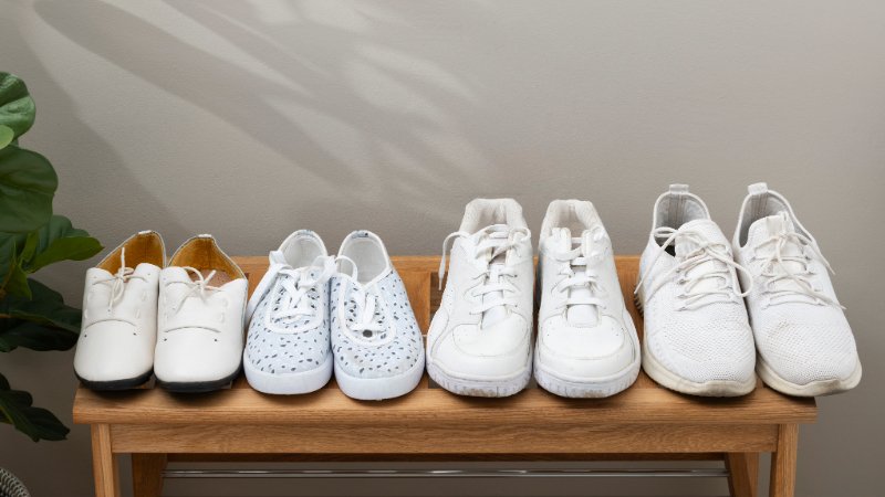White sneakers match nearly every summer outfit and look fresh and modern.